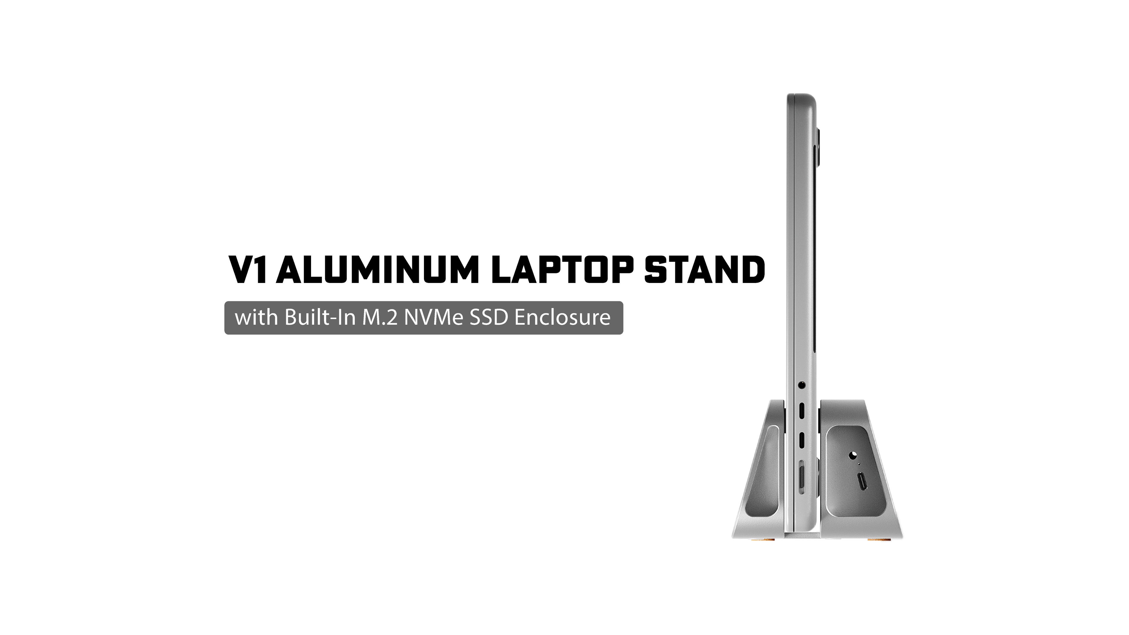 Solid Aluminum Laptop Stand with Built-in NVMe SSD Enclosure – Fan Cooled