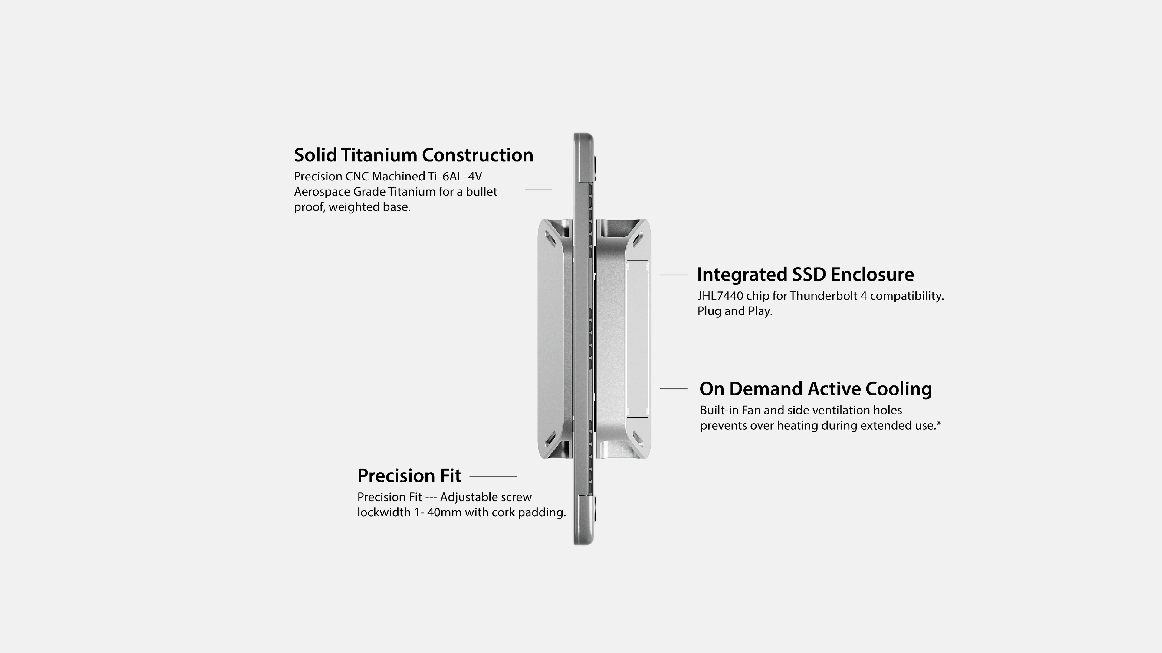 Sleek, strong, and aesthetic — this solid aluminum laptop stand is more than a workspace upgrade. With a built-in NVMe SSD enclosure supporting up to 8TB and on demand active fan cooling, it’s your all-in-one solution for ergonomics and high-speed storage. Compatible with laptops from 13" to 17", and designed to reduce clutter while elevating performance.